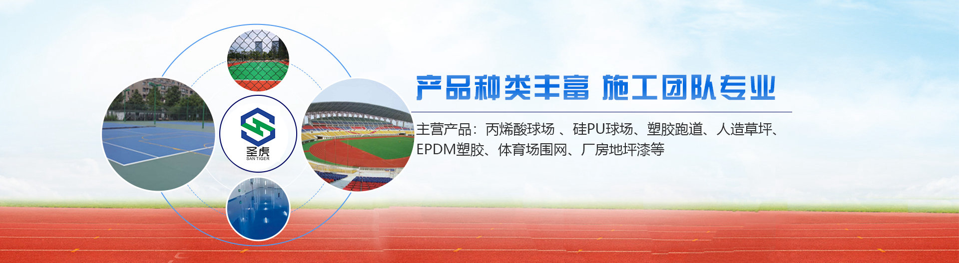 臺州圣虎體育設施工程有限公司,是一家專業從事塑膠跑道、人造草坪、丙烯酸球場、硅pu球場、塑膠球場、球場圍網、幼兒園epdm塑膠地面、幼兒園懸浮拼裝地面、廠房地坪漆等各種運動場地預算、設計、鋪裝的專業公司。
